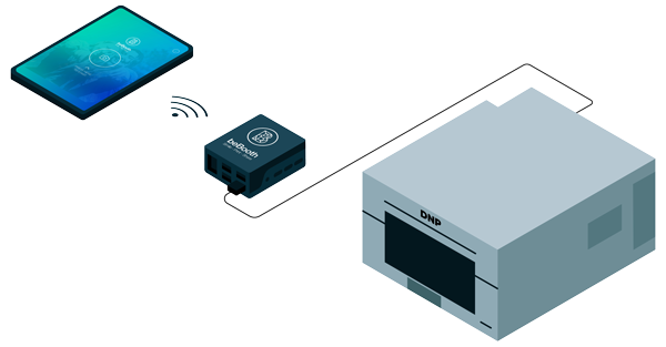 Beprint est un boitier Rasberry Pi qui fait le lien entre l'imprimante et l'iPad. Il permet une intégration optimale de l'application BeBooth.